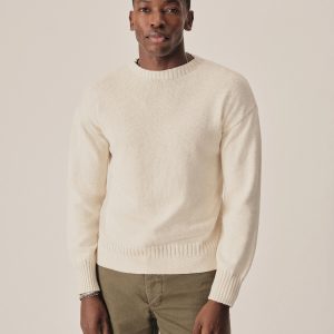 Classic fit short sleeve sweater tee with a straight hem. Yarn-dyed 16 gauge cotton jersey features light slub texture. Features double layer 1×1 ribbing at the collar and rib finishing at the cuffs and hem. Constructed with hand-linked seams for improved durability.