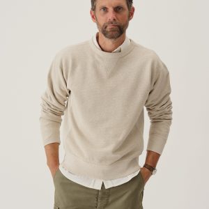 Classic fit sweater polo in yarn-dyed 16 gauge cotton jersey with light slub texture. Features a three-button closure and rib finishing at the cuffs and hem. Constructed with hand-linked seams for improved durability.