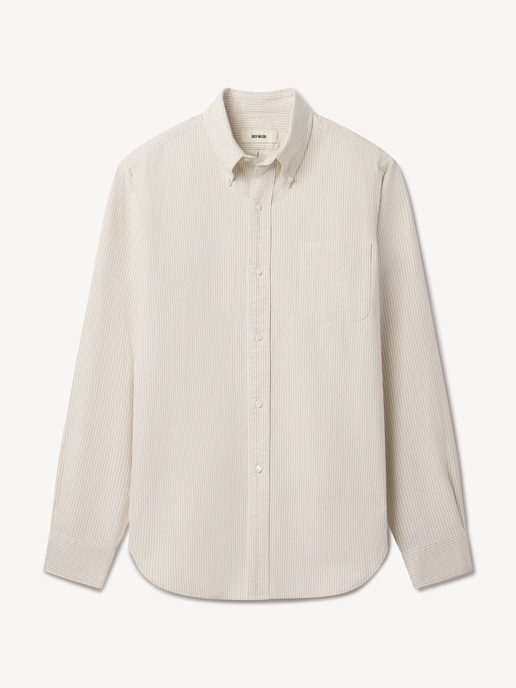The Big Oxford is a subtle nod to vintage Ivy League tailoring with a gently oversized fit — referencing the proportions of archival American Oxfords. Built from 100% cotton in a 175 GSM heavyweight Oxford weave, using fine combed yarn in the warp and durable carded yarn in the weft. Finished with slightly thicker troca shell buttons.