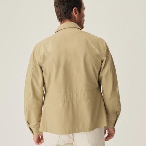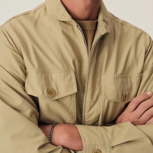 The Flyers Jacket draws inspiration from the late 1940s U.S. Navy Summer Flight Jacket, adapted with a distinct four-pocket design. It features a shawl collar and cuffed sleeves with vented button closures, offering a tailored alternative to the original tubular sleeves. Cut from a sturdy cotton and nylon blend with a Durable Water Repellent finish.