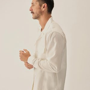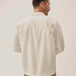 The Casita Camp Shirt channels the casual poise of 1950s and ’60s resort wear. Woven for warmer weather, the ultralight yarn-dyed Tencel brings a smooth, airy drape to cool summer nights. Designed with a period fit, a straight hem, side vents, and authentic details like a collar loop button fastener, patch-and-flap chest pockets, and real troca shell buttons. Finished with single-needle construction, a French placket, and a garment rinse for a soft, lived-in feel.
