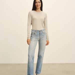 Slim fit long sleeve crewneck tee cut from a supersoft 130 GSM blend of bamboo, cotton, and wool. Features a straight hem, a self bound neck, and raised armholes that hug the contours of the shoulders. Garment washed for a lived-in feel.