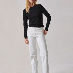 Slim fit long sleeve crewneck tee cut from a supersoft 130 GSM blend of bamboo, cotton, and wool. Features a straight hem, a self bound neck, and raised armholes that hug the contours of the shoulders. Garment washed for a lived-in feel.