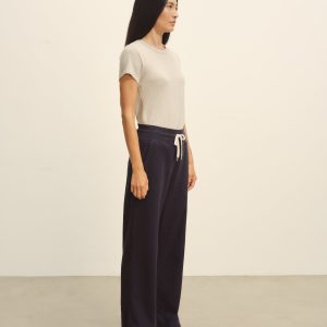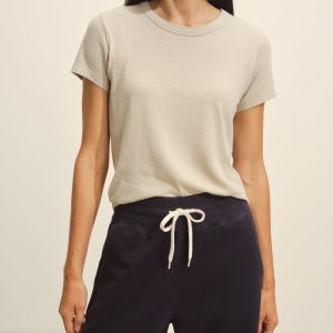 Slim fit crewneck tee cut from a supersoft 130 GSM blend of bamboo, cotton, and wool. Features a straight hem, a self bound neck, and raised armholes that hug the contours of the shoulders. Garment washed for a lived-in feel.