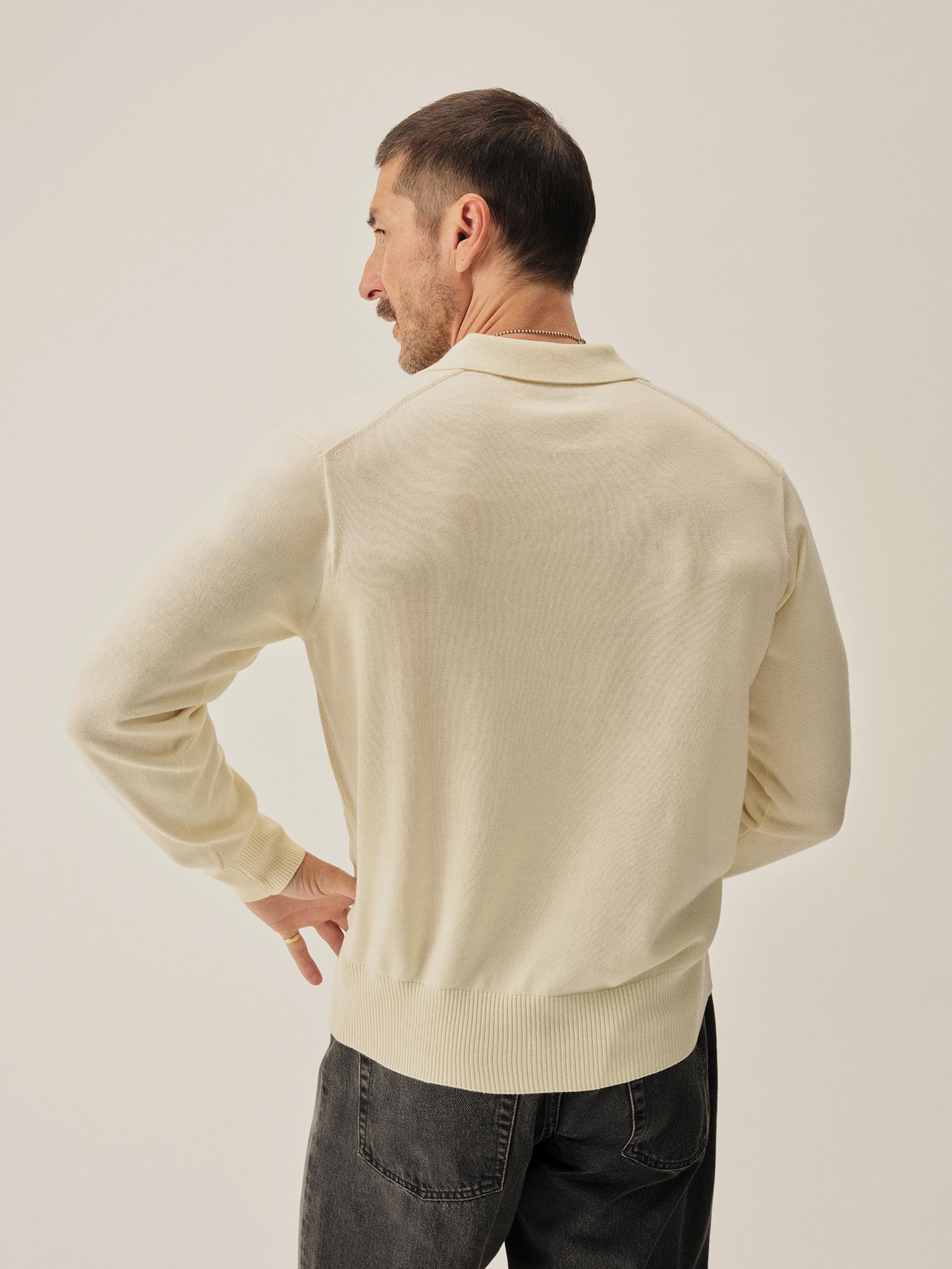 A fully fashioned, long sleeve polo that draws inspiration from the lifestyle surrounding Lake Como in the 1960s. Knit from an ultrafine blend of yarn-dyed organic Egyptian cotton and cashmere, spun in Italy. The polo features a classic fit with jersey body and sleeves, a rib-knit collar, cuffs, and hem.