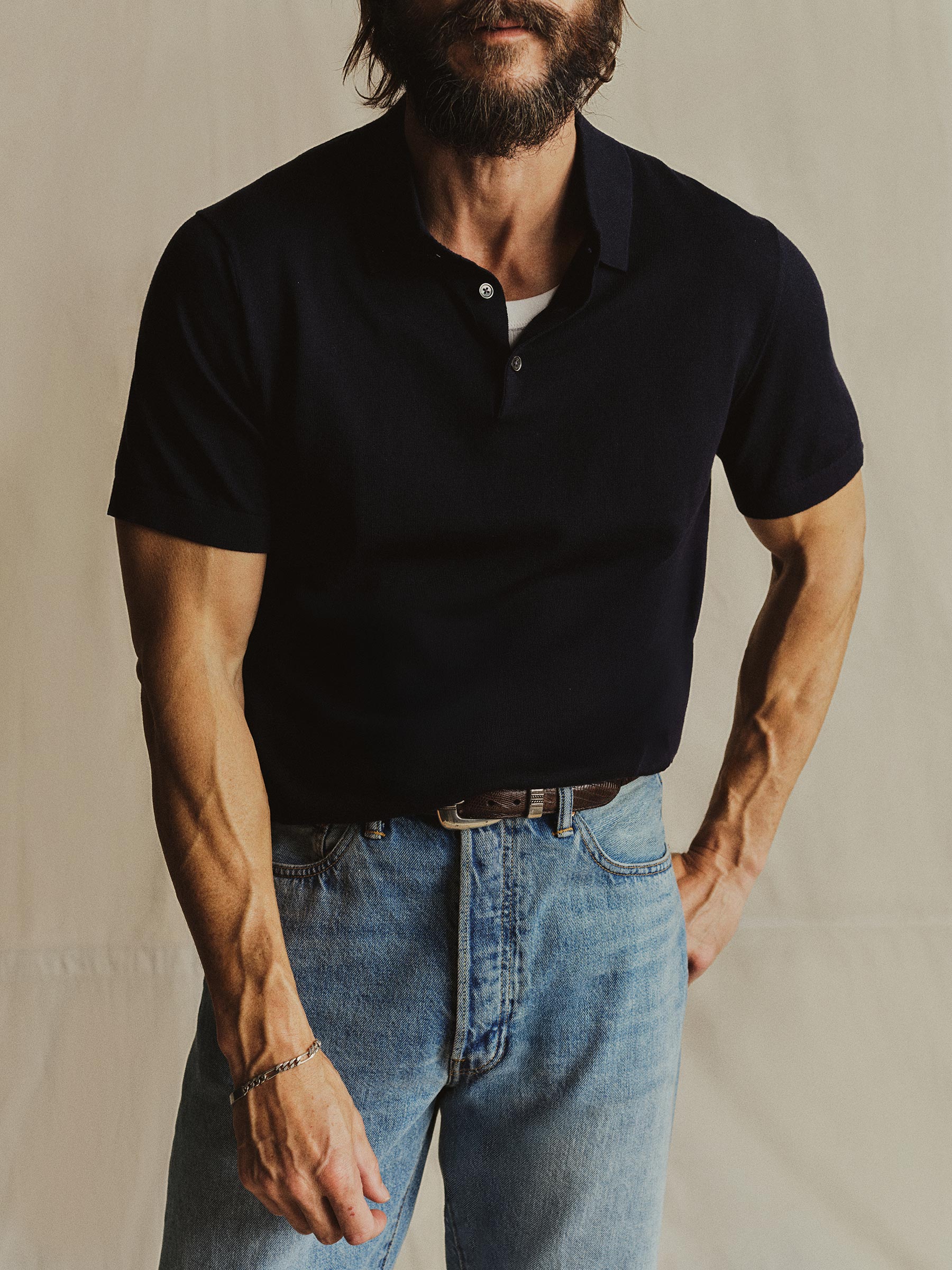 A fully fashioned polo that draws inspiration from the lifestyle surrounding Lake Como in the 1960s. Knit from an ultrafine blend of yarn-dyed organic Egyptian cotton and cashmere, spun in Italy. The polo features a classic fit with jersey body and sleeves, a rib-knit collar, cuffs, and hem.