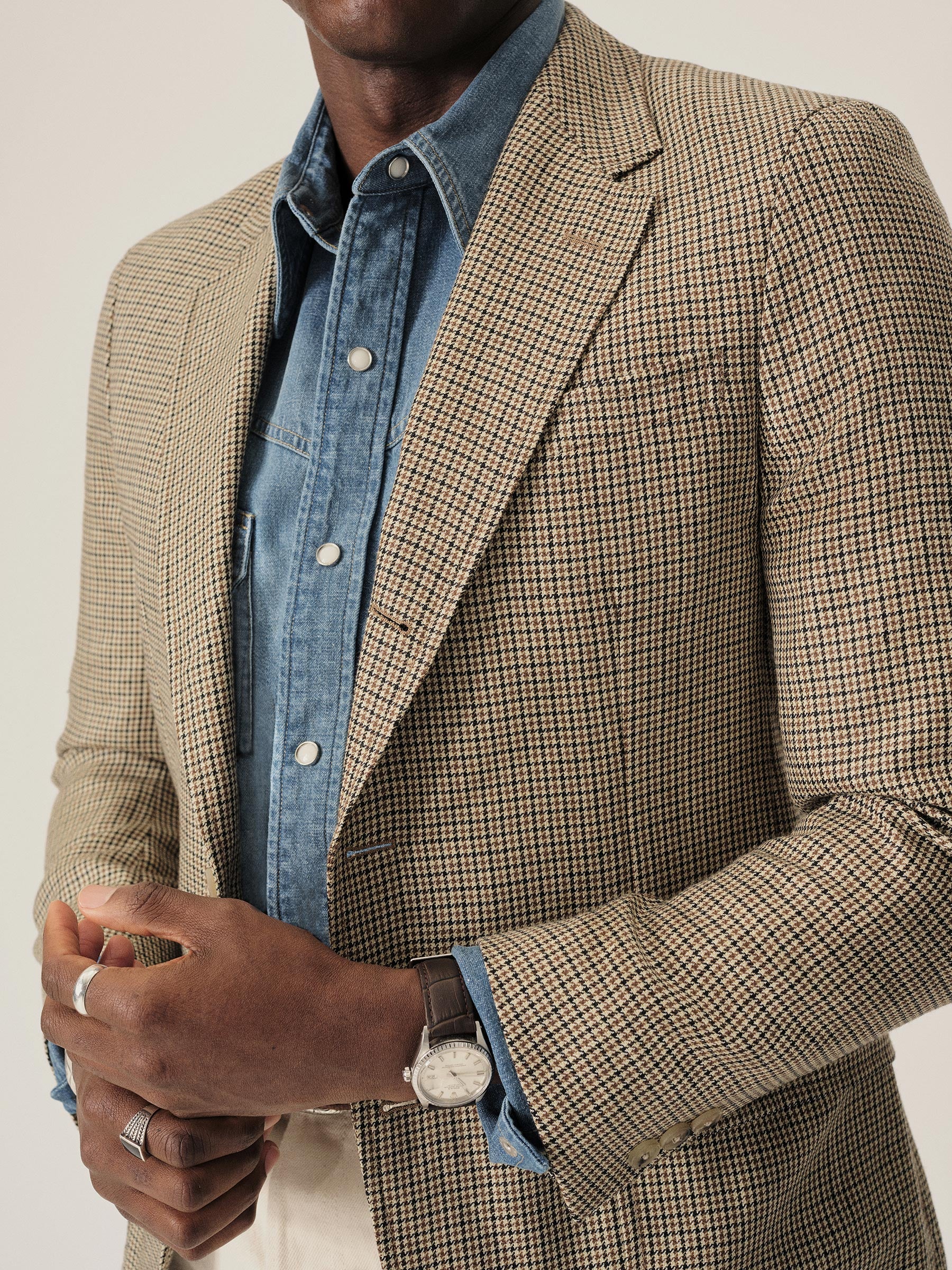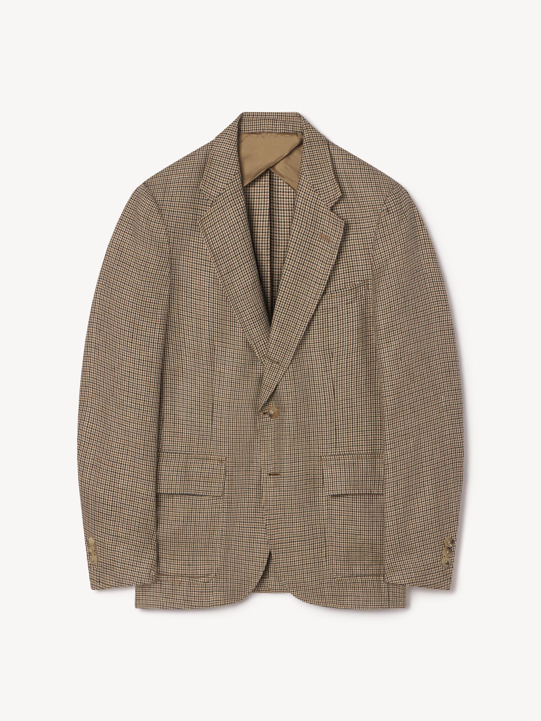 Classic Ivy blazer with a darted front, 3-roll-2 lapel, center back vent, and a soft shoulder. Half-lined in Bemberg with full canvas construction. Details include a patch chest pocket, two patch-and-flap waist pockets, three internal welt pockets, and a notch lapel.