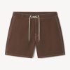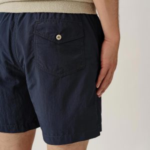 Classic swim shorts are made from lightweight woven nylon using recycled plastic waste found in the ocean. They feature an elastic waistband with an added drawstring for the perfect fit. A small front buttoned pocket and button flapped back pocket help you stow your necessaries in addition to two front slash pockets. 5.5-inch inseam.