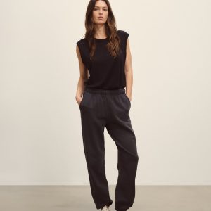 Slim-fit, vintage-inspired V-neck tank crafted from 100% Italian cotton yarn with a 3×3 deep rib structure. Designed with concealed chain threads and snaps beneath each shoulder to keep bra straps in place. Garment washed for a truly vintage, broken-in feel.