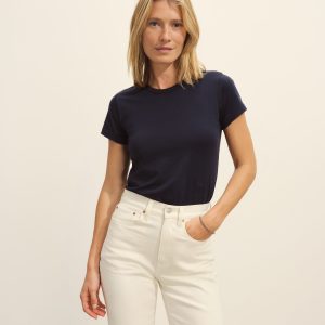 Military-inspired short sleeve henley, crafted from a superfine blend of new and recycled cotton with a subtle, textured rib. Featuring a three-button loop placket and sleeve cuffs. Finished with mother of pearl buttons and garment washed for a lived-in feel.