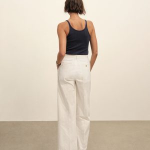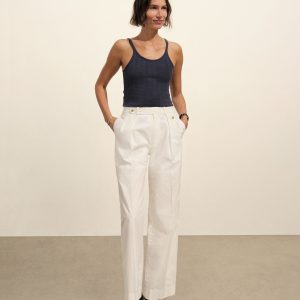 Slim-fit, vintage-inspired base tank made from a textured blend of 60% recycled cotton and 40% cotton. Features a scalloped scoop neckline, contrast rib binding, and discreet baby snaps at the shoulders to keep bra straps in place.