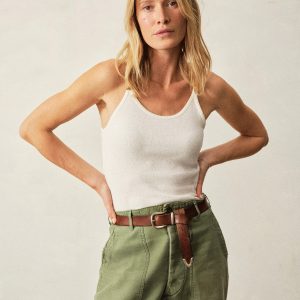 Slim-fit, vintage-inspired scoop tank made from a blend of 60% recycled cotton and 40% cotton. Featuring a combo of jersey fabric and scallop stitch details at the armholes and neckline, it also includes baby snaps for the bra holder.