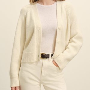 Crafted from a 5-gauge blend of Peruvian alpaca and merino wool, this cardigan has a soft finish and a substantial feel that’s prime for cool-weather outfitting. The boxy, cropped fit is complemented by a classic V-front, a three-button placket, and ribbing at the cuffs and hem.