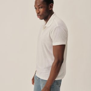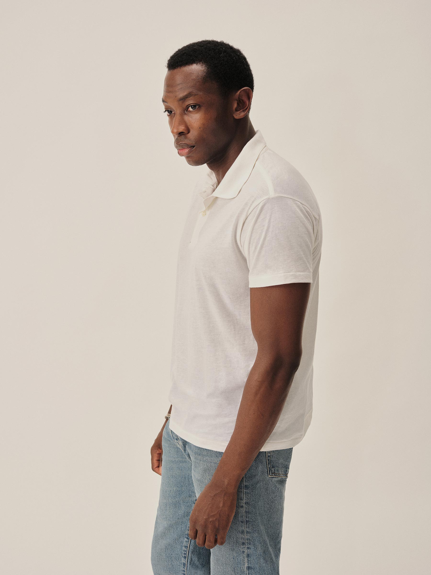 A short sleeve polo knit in Japan from a blend of cotton and cashmere — delivering a refined, ultra-lightweight feel at just 100 GSM. Piece-dyed for rich color and finished with genuine troca shell buttons, it’s designed with a slightly shortened body and a touch of extra room in the chest for ease and movement.