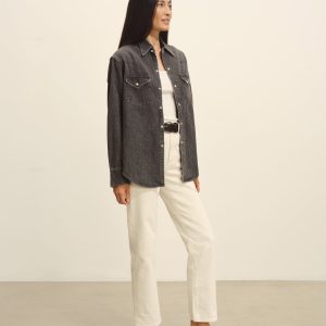 Inspired by vintage western shirting, our take has utility-style details like an angled front yoke, a back yoke, flap pockets, cuffs, and contrast stitching. Made from light and drapey 8 oz denim with an irregular raised nep texture, it’s finished with Japanese pearl snaps and garment washed for a lived-in feel.