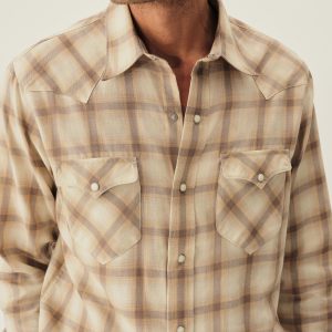In the spirit of the ol’ Palomino, a classic fit western style shirt made from a springweight blend of cotton and wool, ideal for warm climates. The shirt has all the cowboy details like pearl snaps, a classic pointed yoke, five point pockets with pointed pocket flaps.