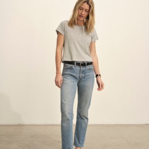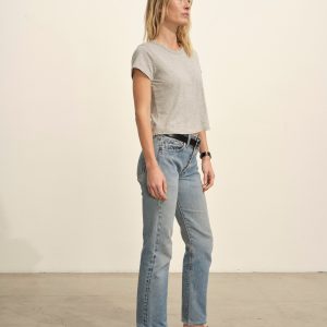 Boxy short sleeve crewneck tee with a straight hem. Cut from 120 GSM Supima cotton. Constructed with rib neck binding and double-needle cover-stitching at the hem. Garment washed for a lived-in feel.