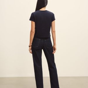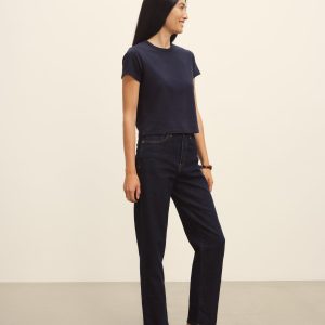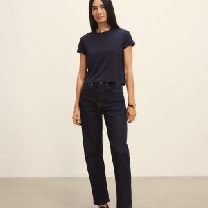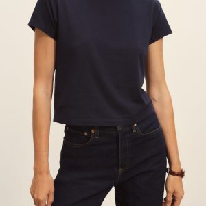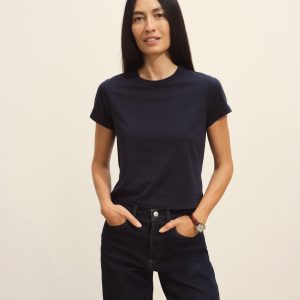 Boxy short sleeve crewneck tee with a straight hem. Cut from 120 GSM Supima cotton. Constructed with rib neck binding and double-needle cover-stitching at the hem. Garment washed for a lived-in feel.