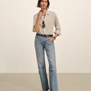 A modern take on men’s sportswear shirts from the 1940s, a relaxed button-down shirt in a silky rayon jacquard weave. Featuring a carved collar, side-seam gussets, button-through plackets along shirt front and sleeves, and pintuck detailing on back yoke and sleeve cuffs. Finished with side-seam gussets and mother of pearl buttons.