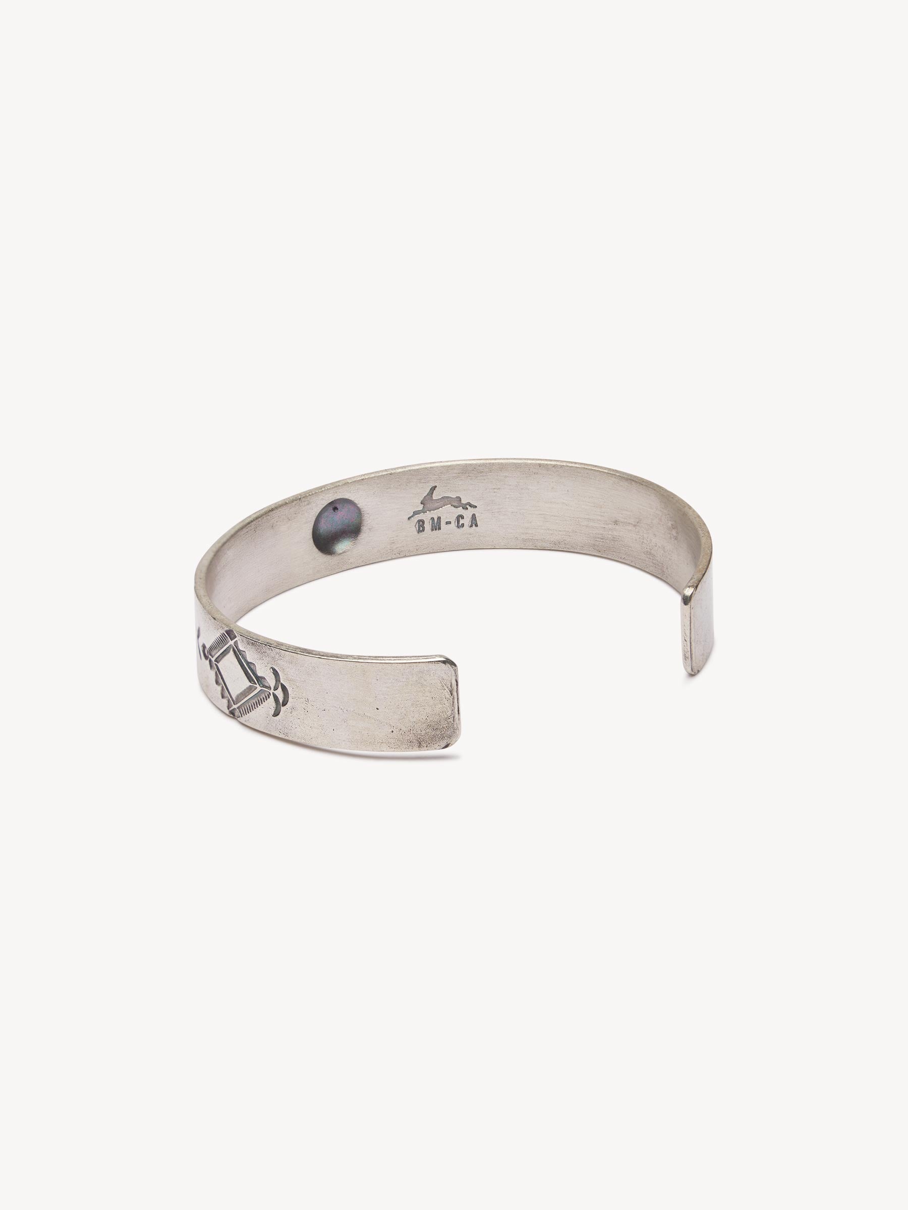 Hand-formed in Texas from solid sterling silver, this cuff draws on early 20th-century Southwestern design. Clean edges and subtle stamped markings bring out the character of the ½-inch band. Finished with a Red Rabbit x Buck Mason co-branded stamp.