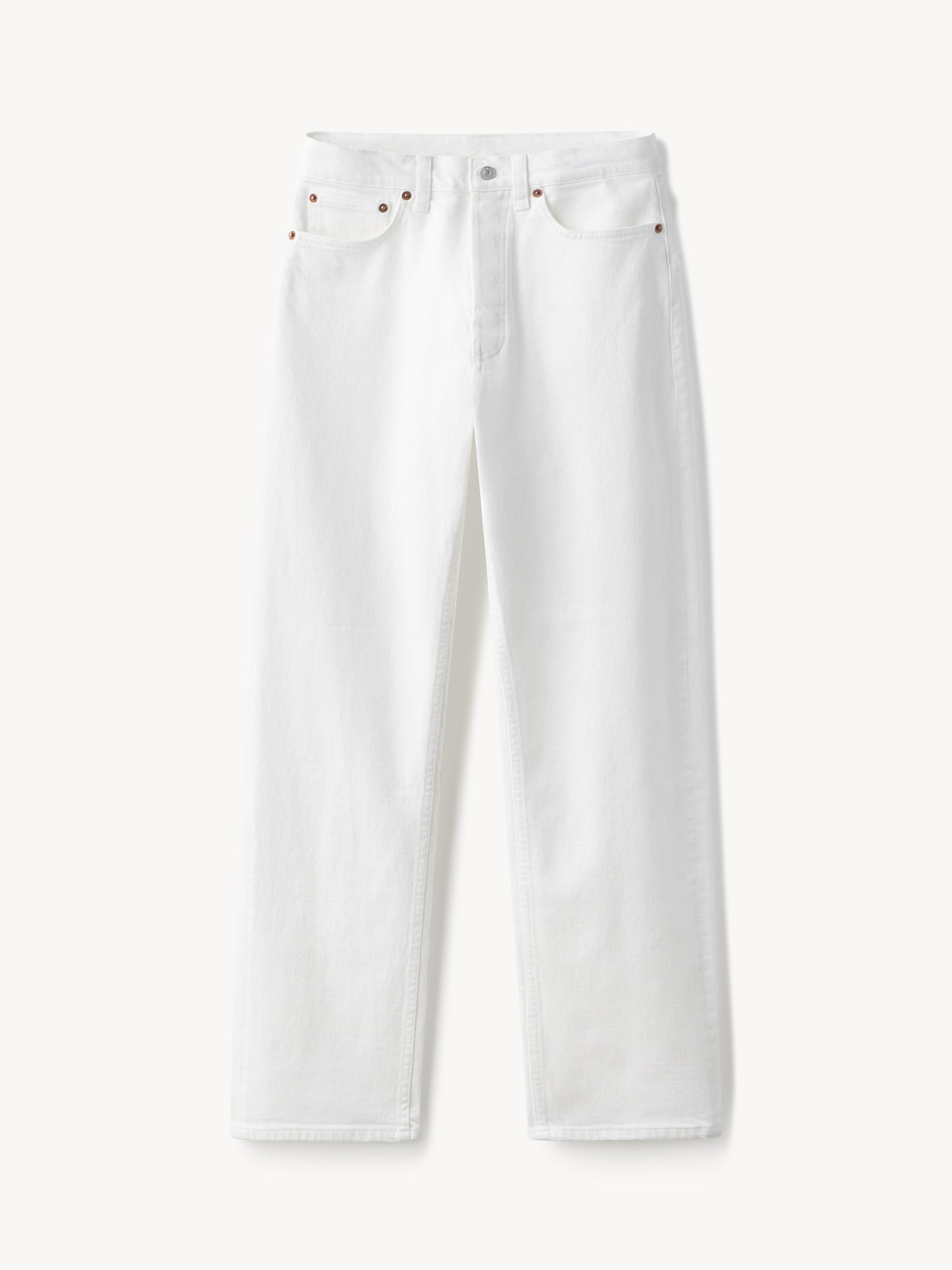 Straight leg, high-waisted pant cut from 12 oz. cotton twill with a touch of stretch for comfort. Inspired by vintage denim, the busted outseam creates a smooth silhouette. Garment dyed and washed with softener for a lived-in feel. Zipper fly. Pair with the Mechanics Jacket to complete the look.