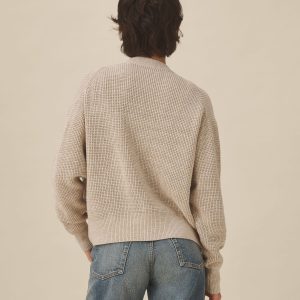 A relaxed cardigan made from marled cotton yarn and knit in a classic waffle stitch. Designed to layer over tees, it’s built with a functional front placket with urea buttons, patch pockets, and a clean V-neckline.