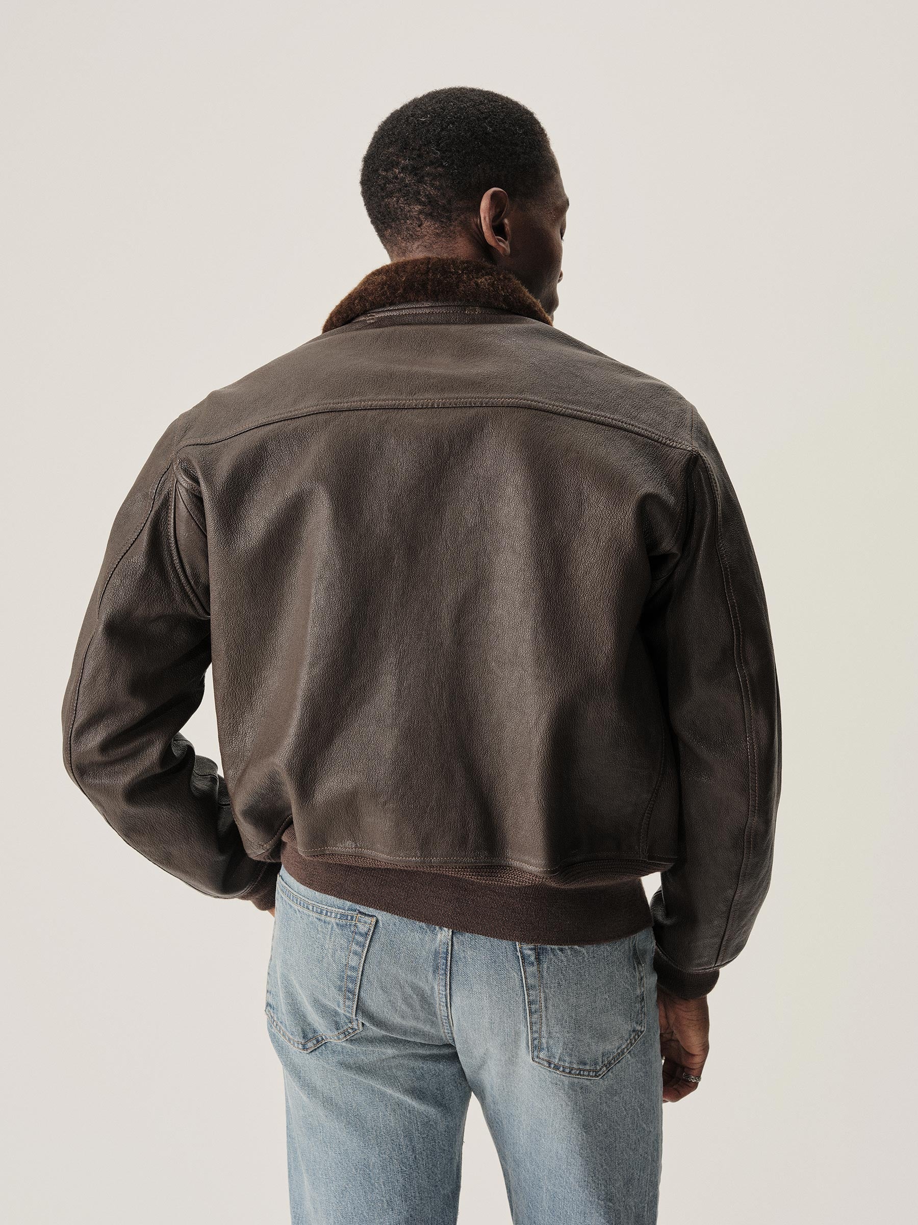 Few icons conjure the golden age of flight like the G-1 jacket, first developed by the US Navy in the 1930s, and we make ours with a vintage fit to match the classics. Crafted like the original with a goatskin body and a shearling fur collar, it will develop a handsome patina as it becomes a heritage piece of its own. The relaxed chest and ribbed details ensure a spot-on mid-century profile with ample comfort.