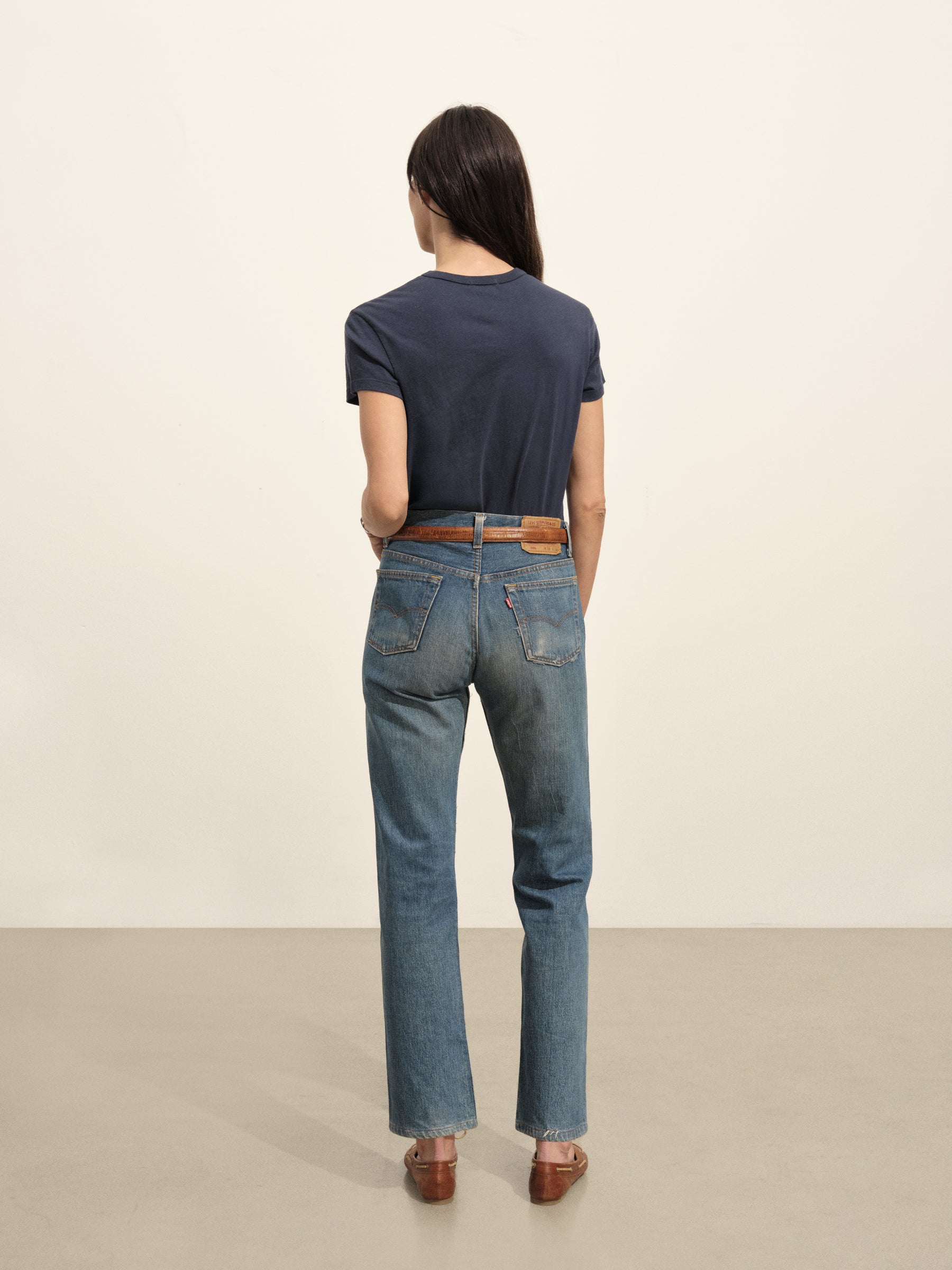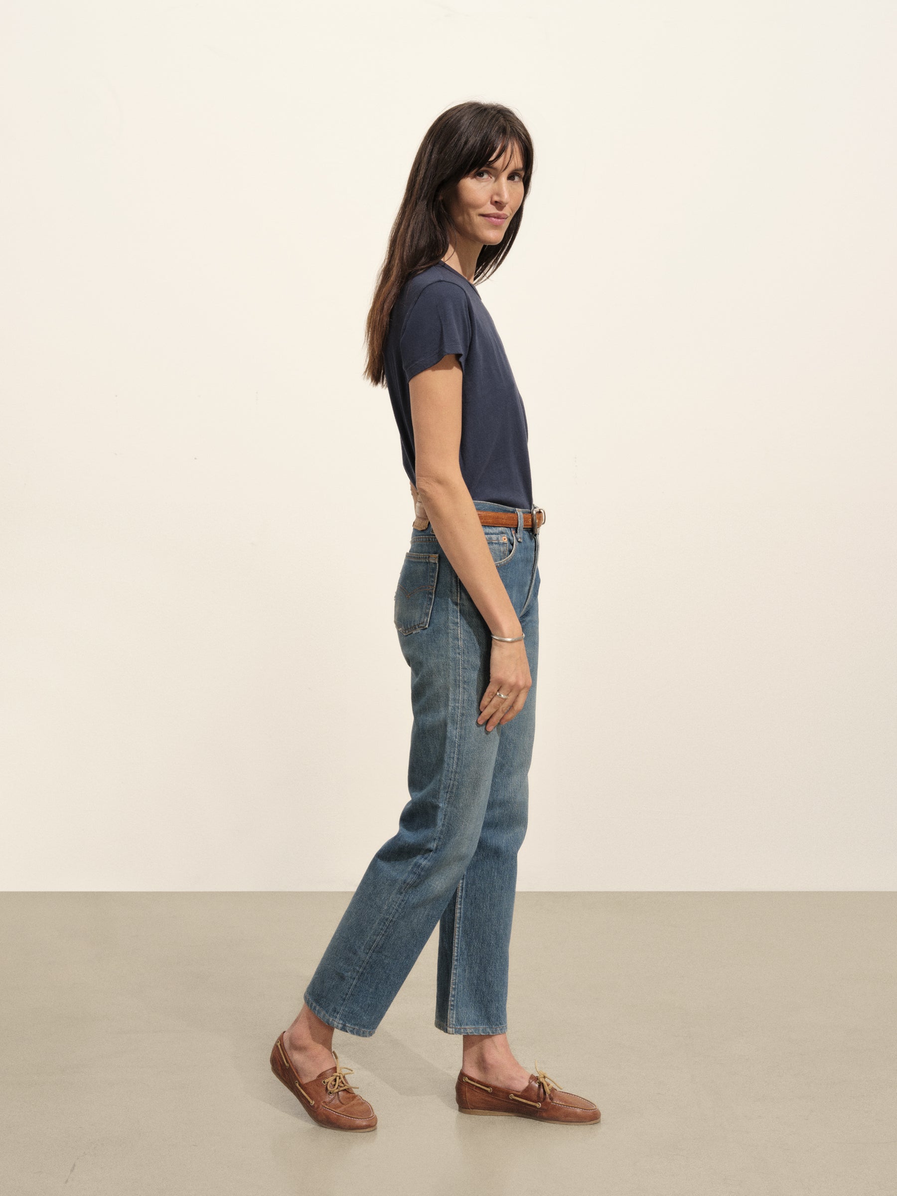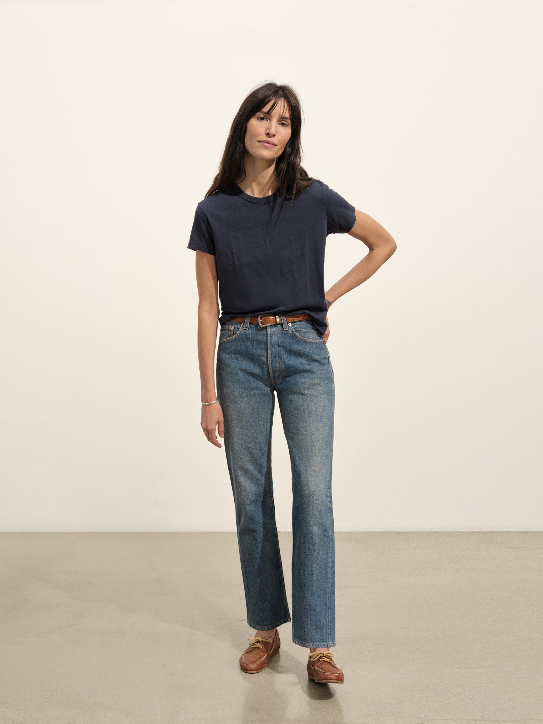 Classic fit short sleeve crewneck tee with a straight hem, cut from 125 GSM cotton with light slub texture. Constructed with self neck binding and ladder stitch detailing at the hems. Garment dyed and washed with softener for a lived in feel.