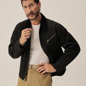 Classic fit, fully lined bomber jacket cut from a 5.5 oz. yarn-dyed cotton/poly twill with a durable water repellent finish. Details include angled flap hip pockets, ribbing at the collar, and articulated two-piece sleeves. Zip front closure. Insulated with PrimaLoft®.