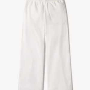 Straight leg, high-waisted 2×2 rib knit pant cut from 295 GSM stretch cotton that holds it shape. Fits comfortably at the waist with a wide elastic waistband with a full length inseam measuring 31 3/4”. Garment washed for a lived-in feel.