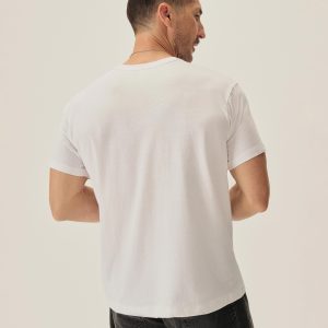 Two classic-fit, short-sleeve crewneck tees made from midweight, American-grown, ring-spun cotton yarn. The tubular-knit construction eliminates side seams, offering a clean drape that naturally molds to the body. The subtly textured 160 GSM fabric is knit at BM Knitting Mills in Mohnton, PA, and sewn in Los Angeles.