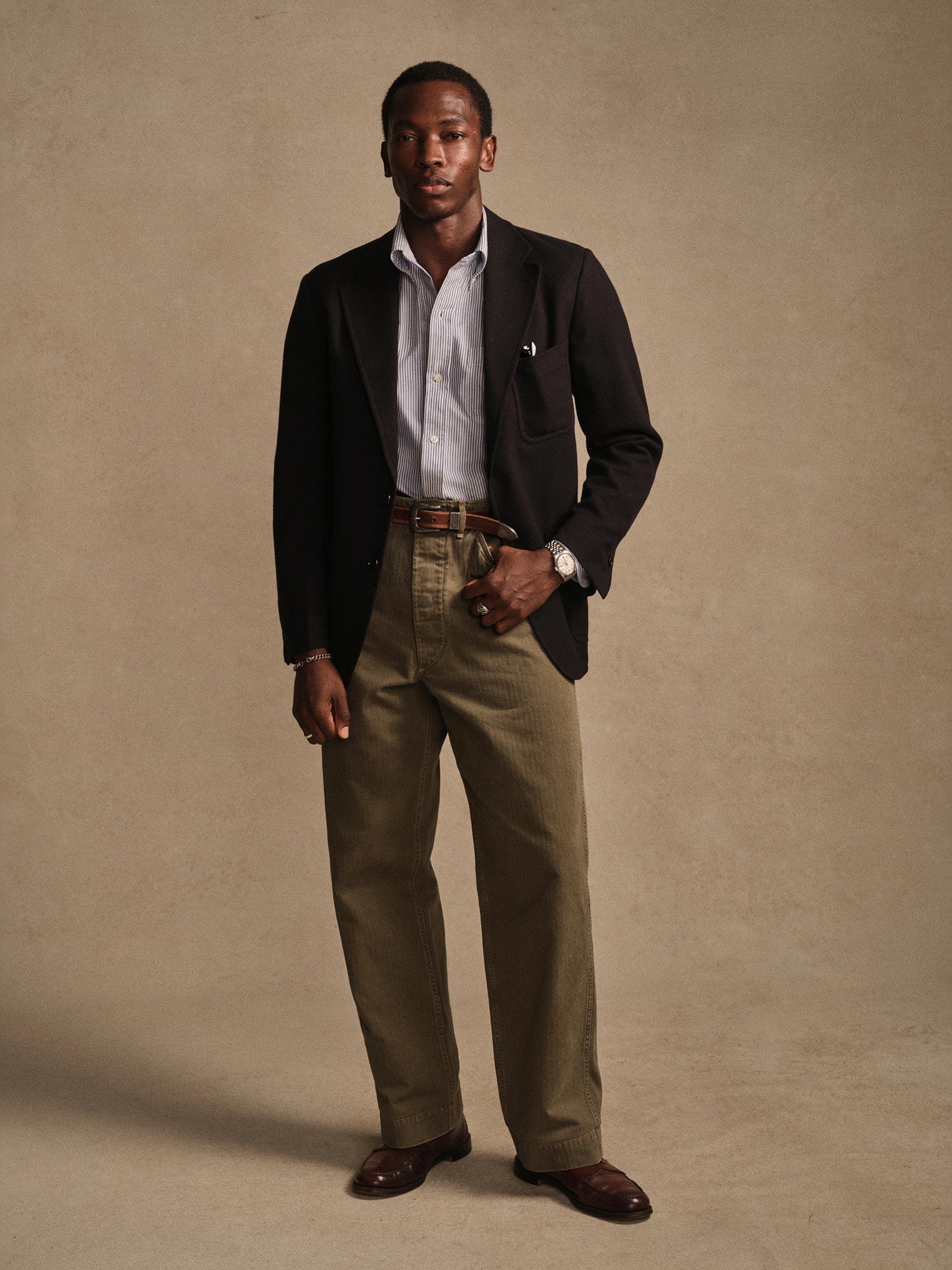 An Ivy-inspired American blazer crafted from a blend of wool and cashmere. Designed with a 3-roll-2 button stance, open patch pockets, and a functional sleeve vent with two horn buttons. Cut with a center back seam and left unlined through the body for a relaxed, unstructured feel, while the sleeves are fully lined in viscose for smooth layering.