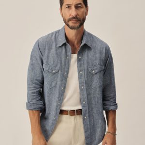 Classic fit short sleeve camp collar button up cut from a mercerized 4 oz. washed cotton. Features a four-button placket with mother of pearl buttons, a single spade chest pocket, and a loop and button closure at the neck. Constructed with clean finished seams. Garment washed with enzymes for a lived-in feel.