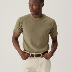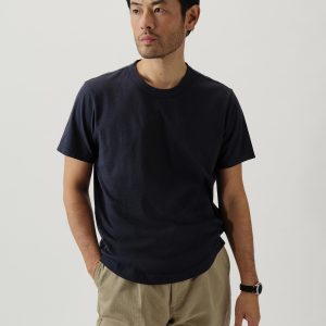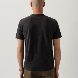 Classic fit short sleeve crewneck tee with a straight hem. Cut from a 190 GSM yarn-dyed hemp/cotton blend that wicks moisture and breathes easily. Garment washed for a lived-in feel.